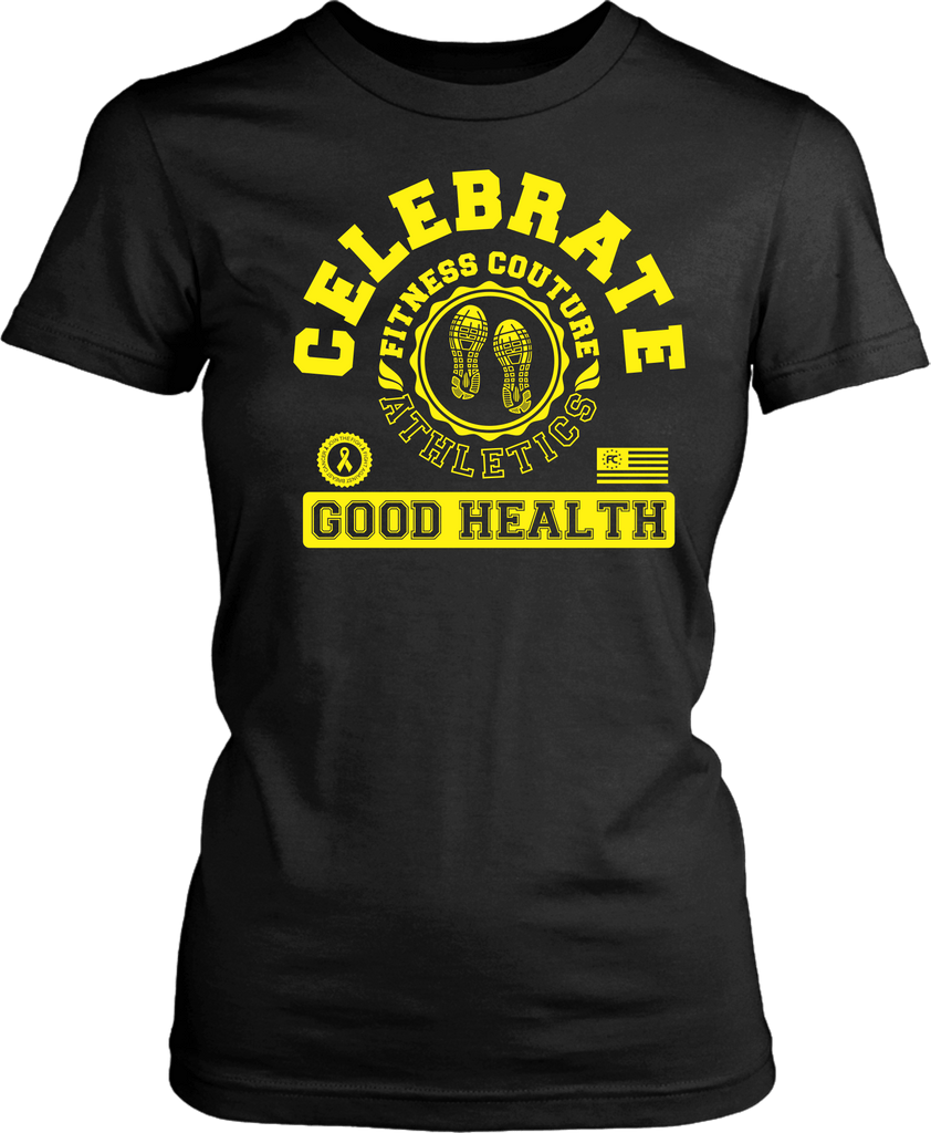 Fitness Couture Athletics - Celebrate Good Health T-shirt Red, Workout, Training "Yellow"