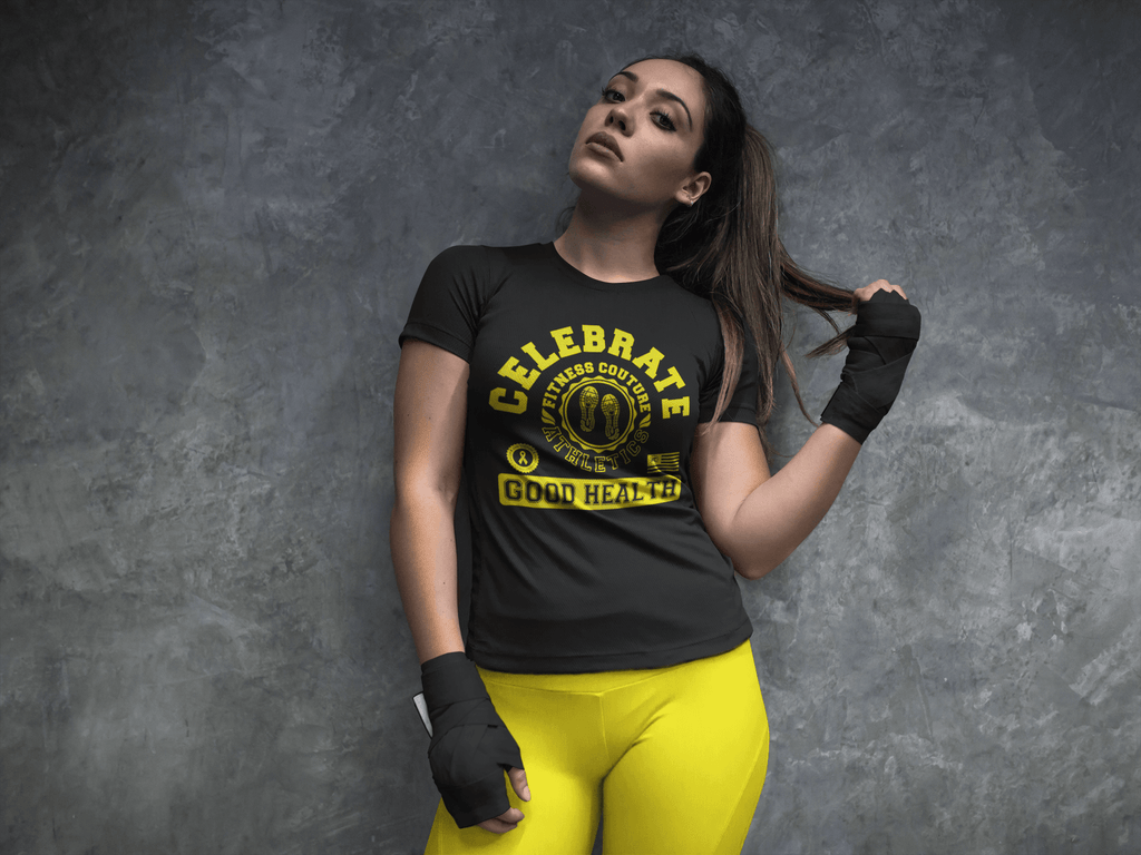*NEW RELEASE* From the Fitness Couture Line -Celebrate Good Health "Yellow" T-shirt, great for Workout, Training, Gym Day or just out running errands...