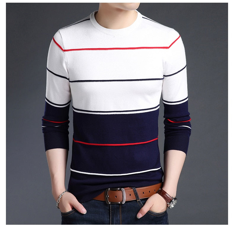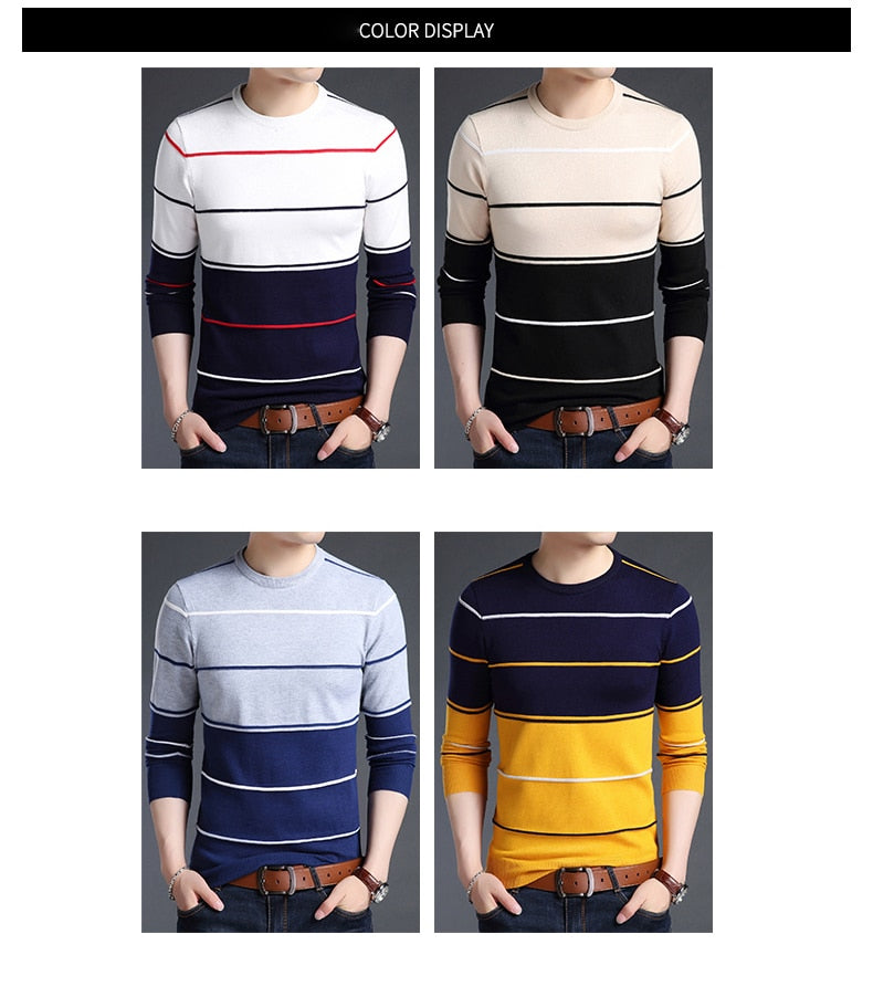 New Fashion Brand Sweater Men's Pullover Striped Slim Fit Jumpers Knitted Woolen Autumn Korean Style Casual Men Clothes