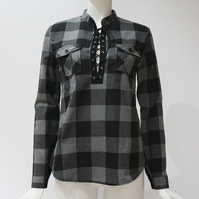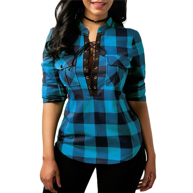 Women's Fashion Top Plaid Blouse Shirt