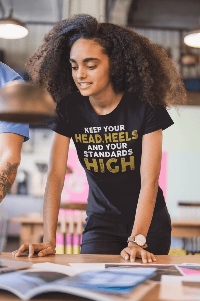 Shop this Awesome Design "Summer Trendy Tee - Keep Your Head, Heels and your Standards High" custom made just for you available in many styles, sizes, and colors.
